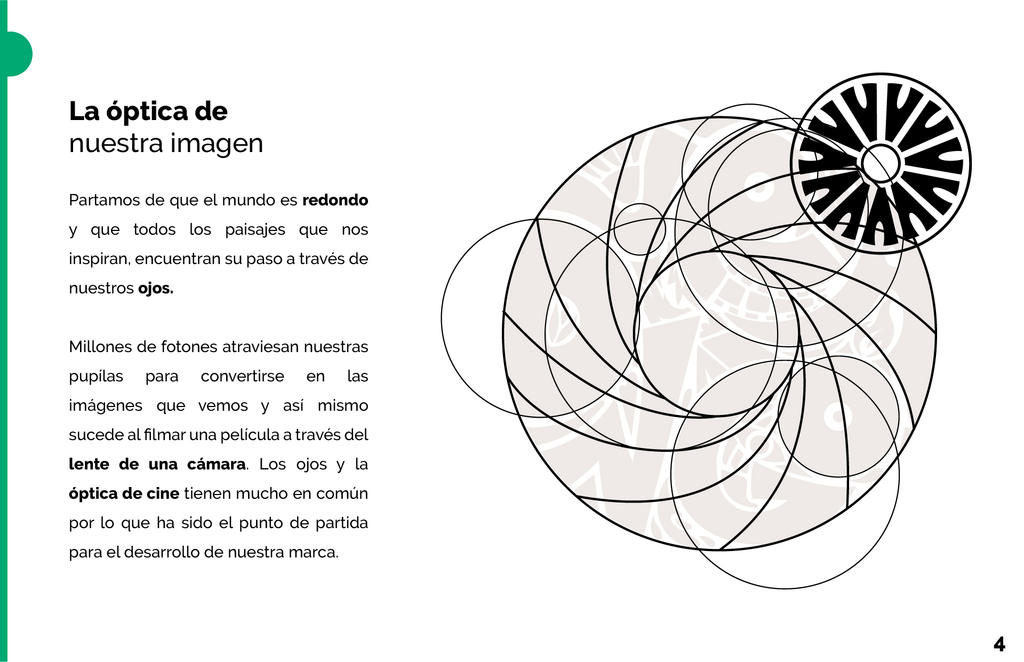 sucede al filmar una película a través del lente de una cámara. Los ojos y la óptica de cine tienen mucho en común por lo que ha sido el punto de partida para el desarrollo de nuestra marca.